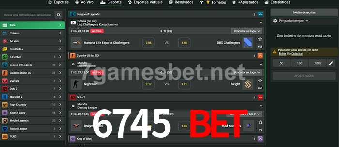 O 6745 Bet oferece uma grande seleção de opções de apostas em e-sports com probabilidades competitivas